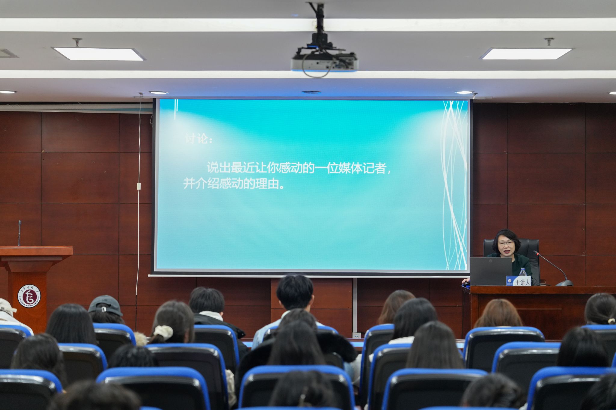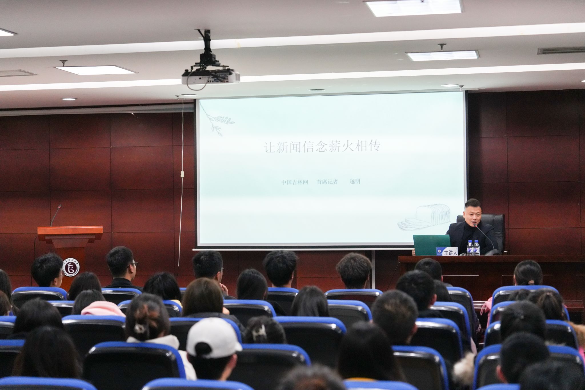 《吉林日报》科教卫部主任刘怀以“新闻写作实践方法与素养提升”为题作专题讲座,以新闻的基本写作为中心,从什么是新闻、新闻的特性、怎样写好新闻等方面,给师生们带来一场专业性极强的知识性讲座。