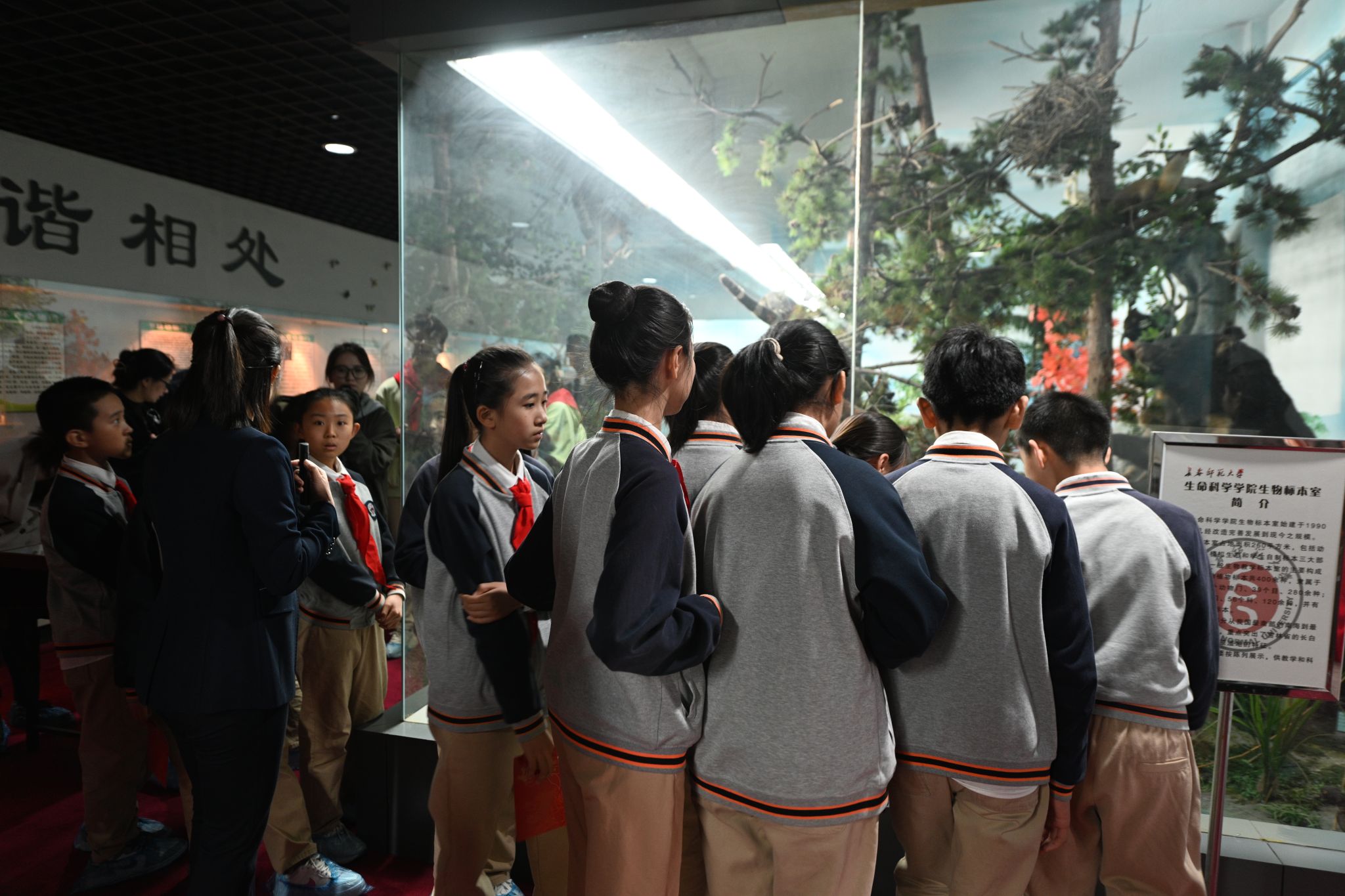 在物理学院的科学探究实验室和生命科学学院的生物标本室两个实践拓展基地,通过宋瑜、康玉麒、赵婷婷、吴爽四名讲解员的耐心指导,学员们积极动手实践与互动体验,认知科学原理与科学技术。生命科学学院教师鄂明菊,更是化身“红领巾讲解员”与少先队员互动探索大自然的奥秘,指导学员细致观察动植物标本,了解各种生物的生态习性、形态特征和生物的进化过程。通过可触可感的体验式教学,学员们全方位感受科学的神奇与科技的魅力。