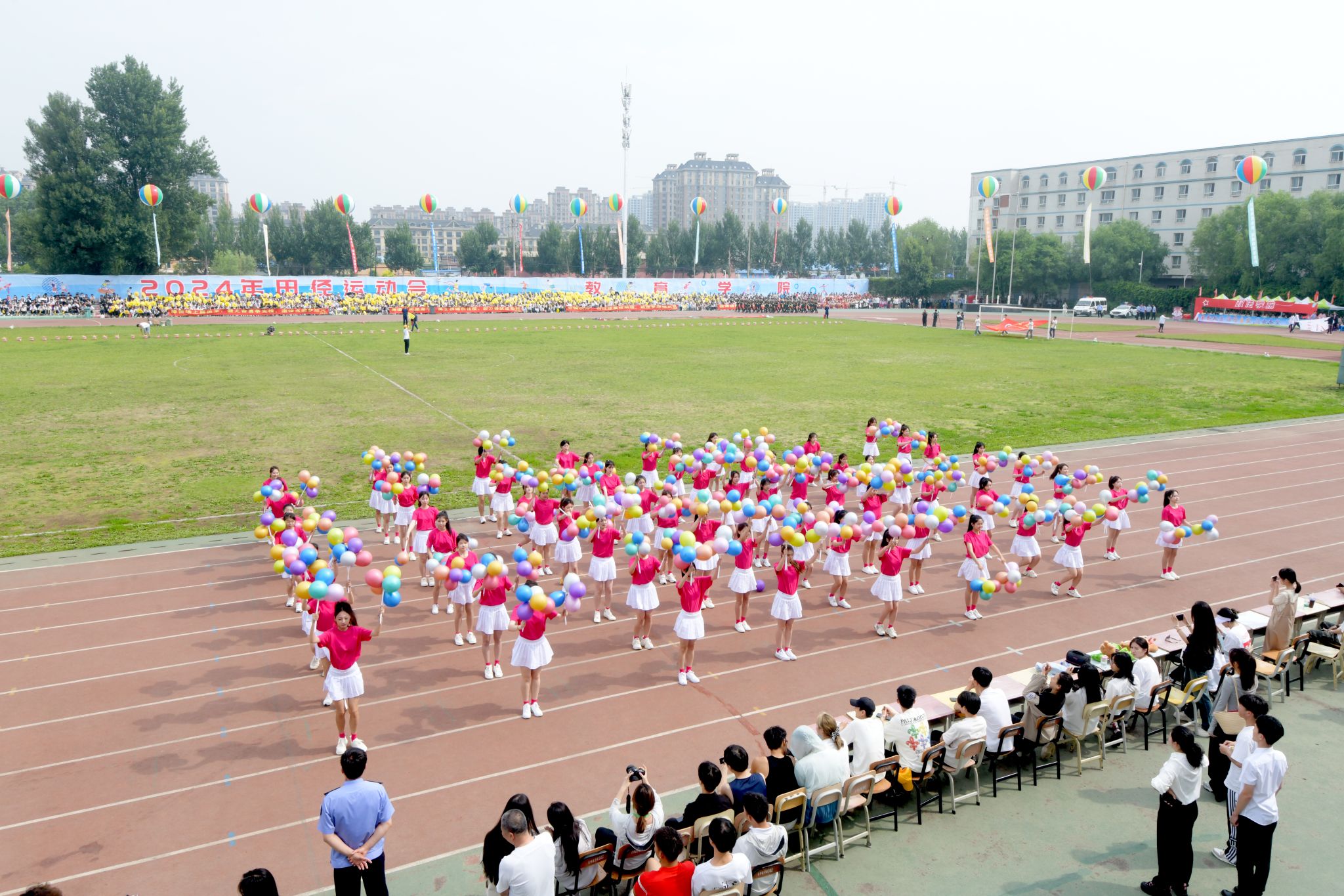 学校领导,各部门、各学院负责人在主席台观看比赛。