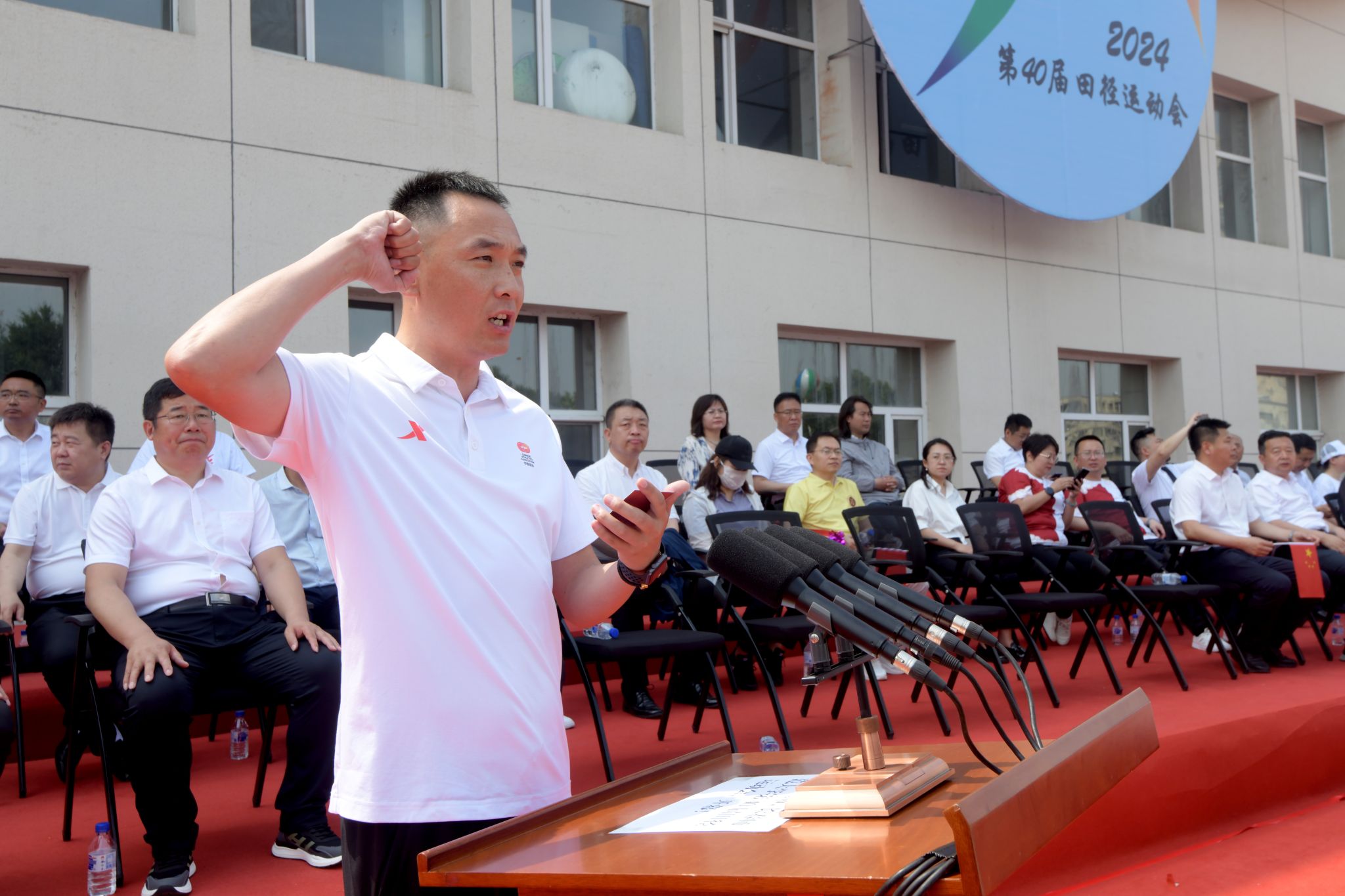 15时,第40届田径运动会完成各项赛事,举行闭幕式。副校长胡德超主持闭幕式。